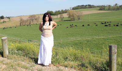 I love wearing long, thin white fabric in the summer! This is beautiful on you! Down on the farm! LOL! ~Cynthia